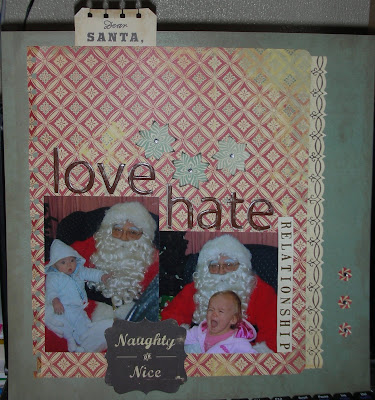 I loved the pictures of Cole & Lilli (my neice) with Santa. These are from 2004. Lilli was not enjoying Santa at all as you can tell. She's so cute even when she's mad! Anyway, I had fun scrapping these and wanted to share!